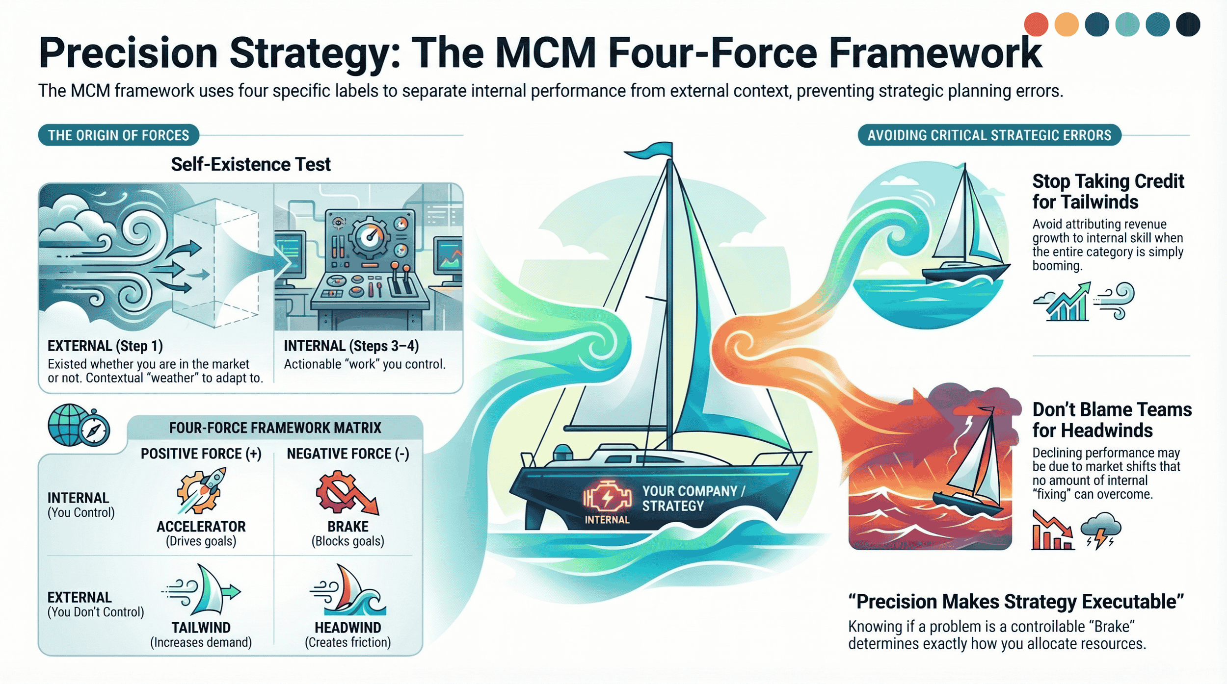 Mistake 1: Listing internal strengths as Tailwinds. "Our strong sales team" is not an Accelerator. It is an internal asset. M10 is strictly external. If you cannot describe a force without referencing your company, it doesn't belong in M10.